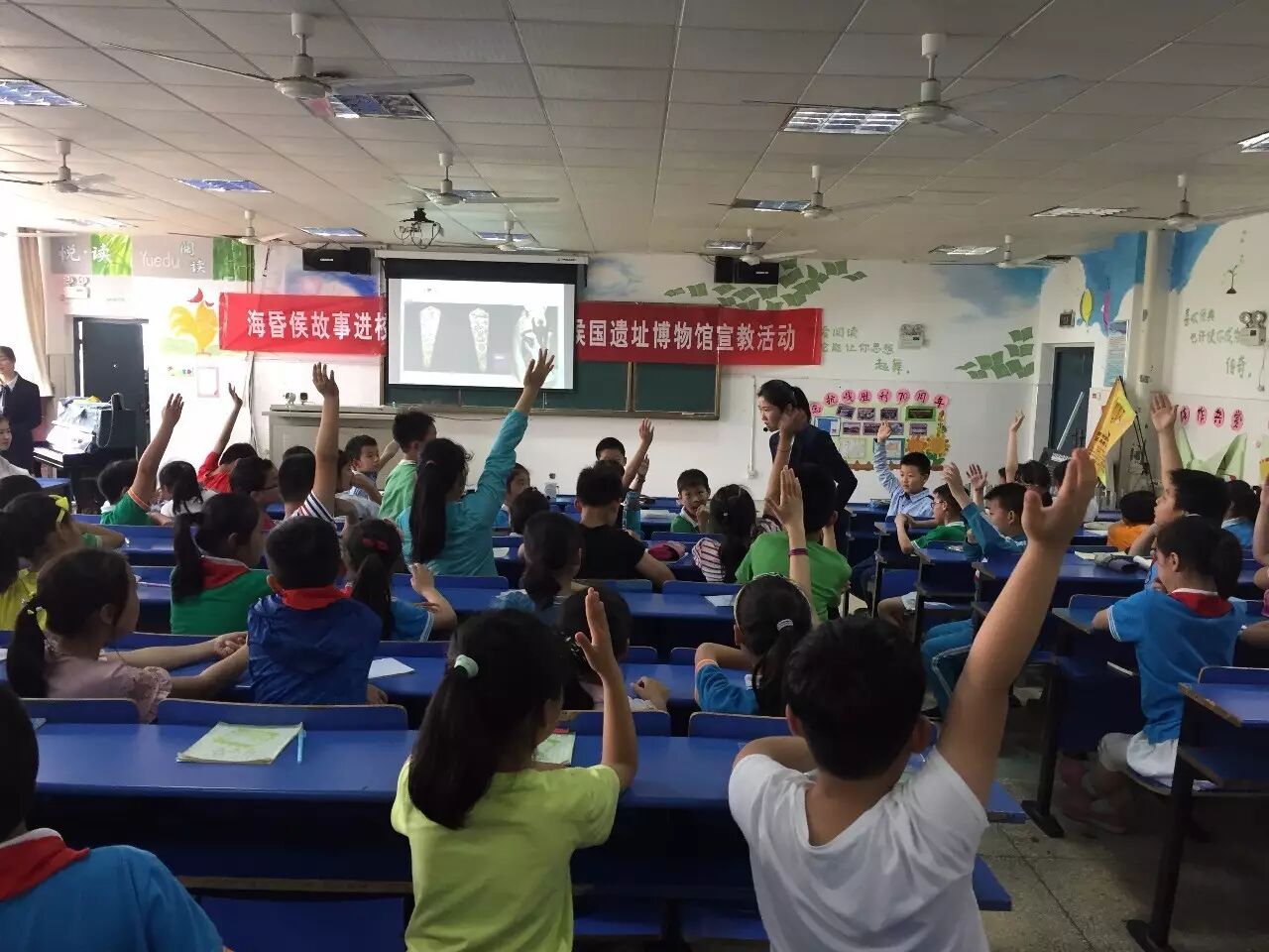 5.18日,是国际博物馆日,今天我们的讲解员来到了南昌师范附属小学,在这里,给孩子们讲述了一堂生动活泼的海昏侯故事。