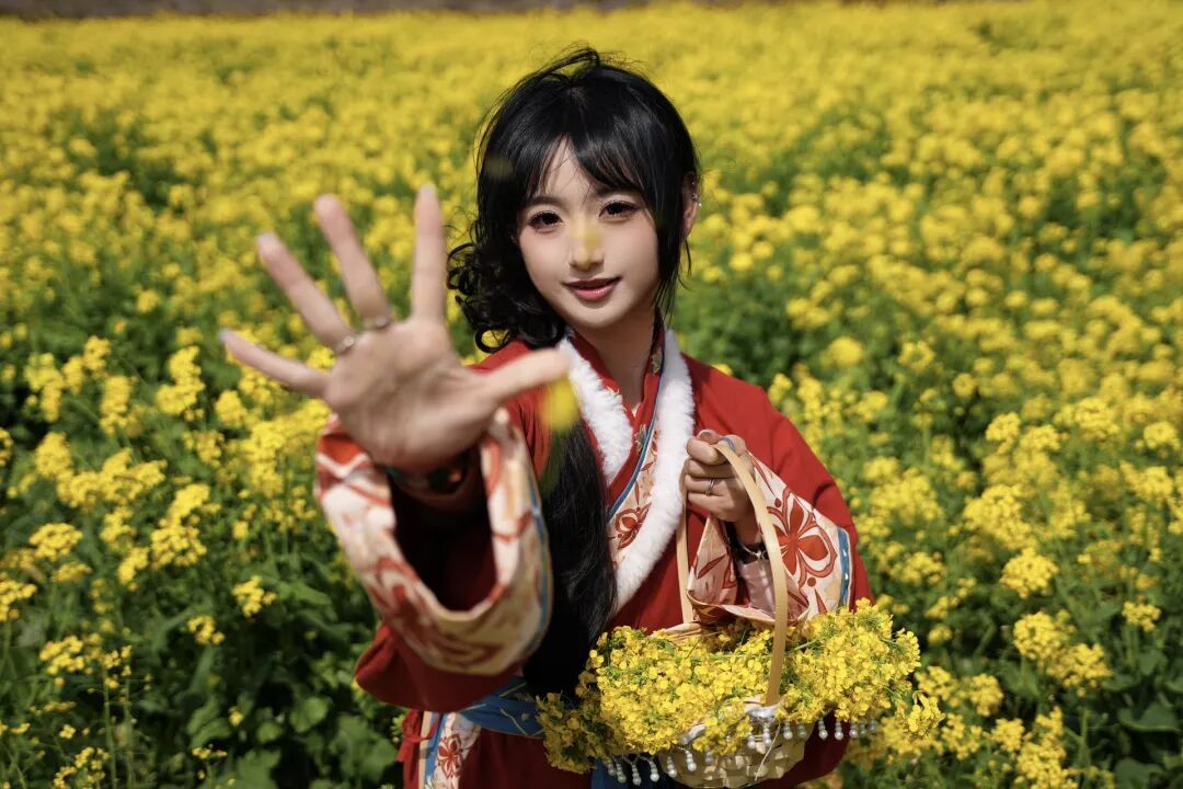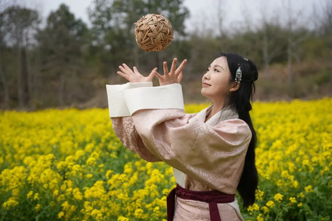 汉服蹁跹的姑娘,穿行于烂漫花间,
